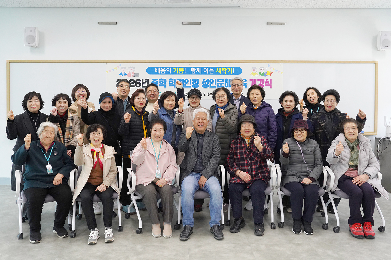 정선군은 배움의 기회를 놓친 성인 학습자들에게 기초 학력 취득의 기회를 제공하기 위해 ‘2026년 초등·중학 학력인정 성인문해교육’ 개강식을 개최했다.